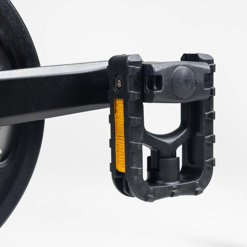 Pédales pliantes pour limiter l’encombrement du vélo plié.
